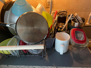 We like this better than a dish-rack, or an "absorbent" drying mat. This is like a huge soft mousepad - a good thing. I love how large and flat it is, where you can lay dishes or whatever on top (especially pots or pans that take up surface area.